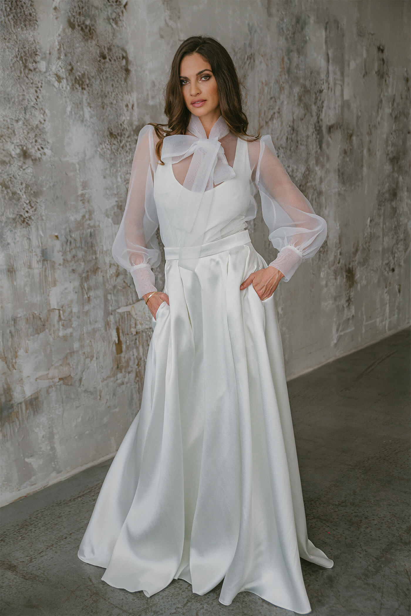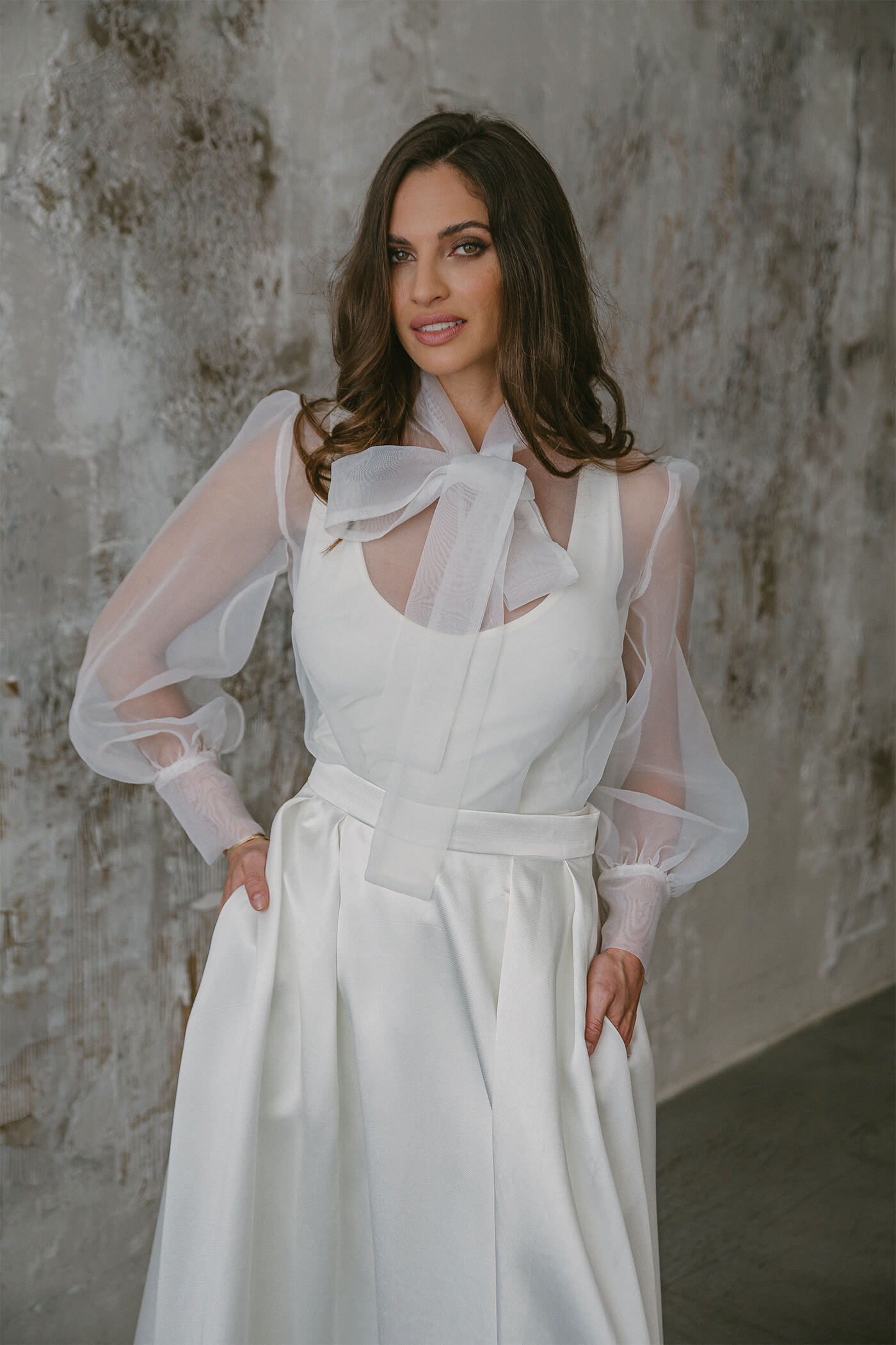 A kapszula kollekciót azzal a céllal hívtunk életre, hogy a jó értelemben vett Easy, azaz könnyed stílus is teret kapjon az esküvői ruhák között. Mit jelent ez pontosan? A tőlünk megszokott minőségi alapanyagok felhasználása mellett törekedtünk olyan alap darabok megalkotására, melyek a nagy nap után helyet kaphatnak a gardróbunkban. Nem egyetlen alkalomra szólnak, hanem később is szívesen viseljük őket.