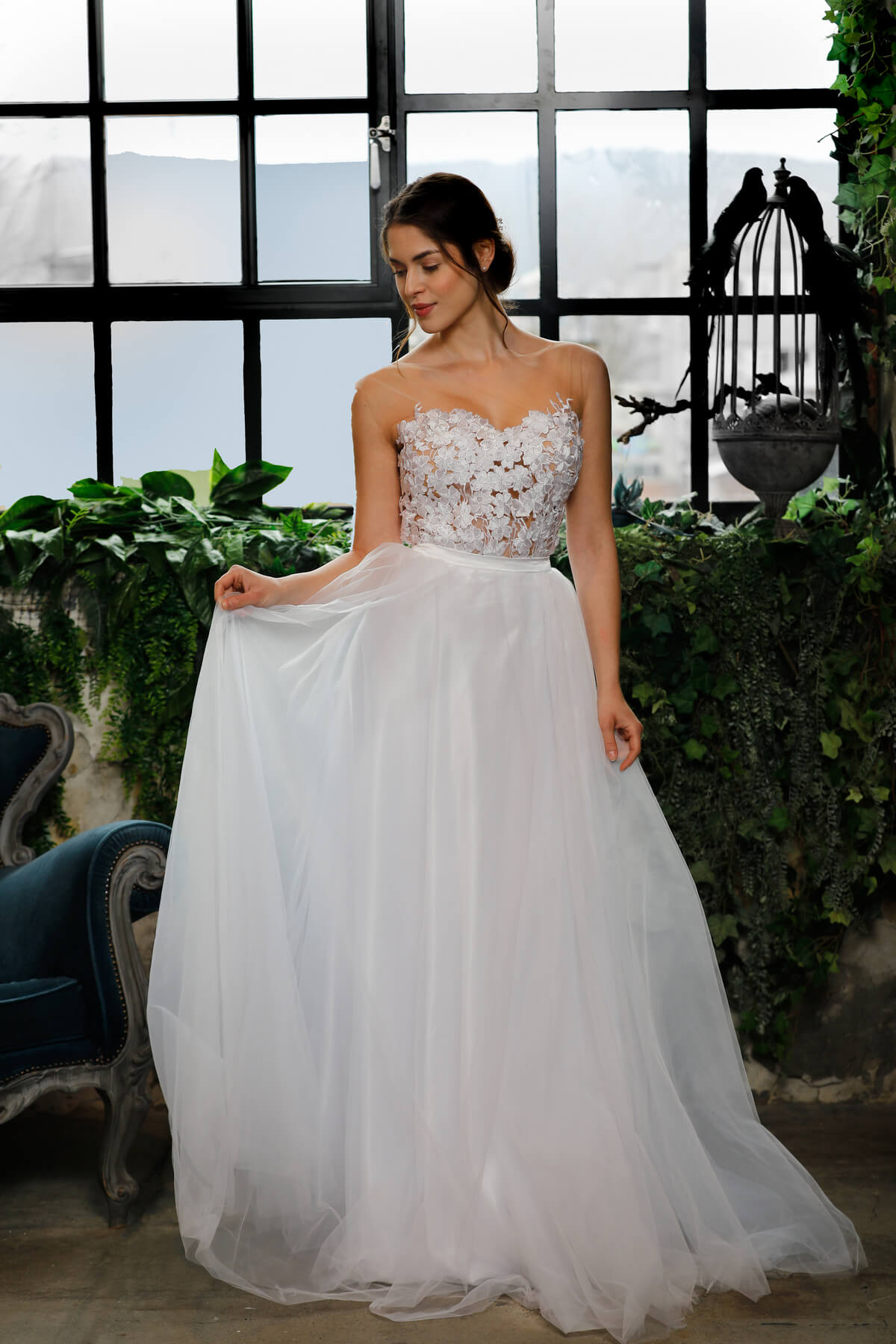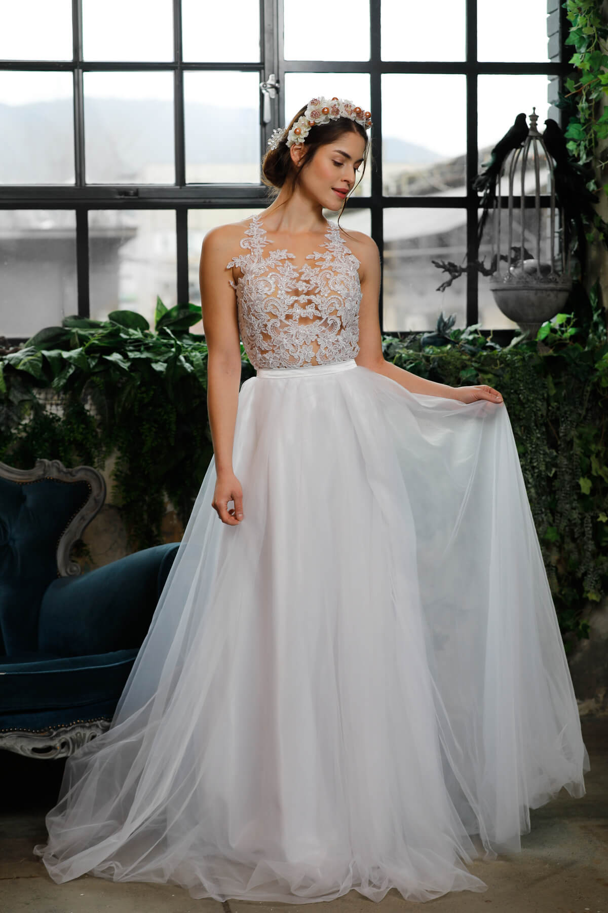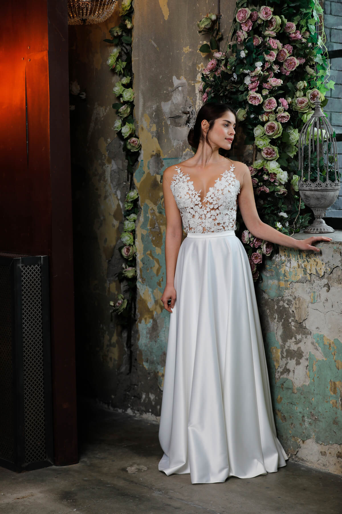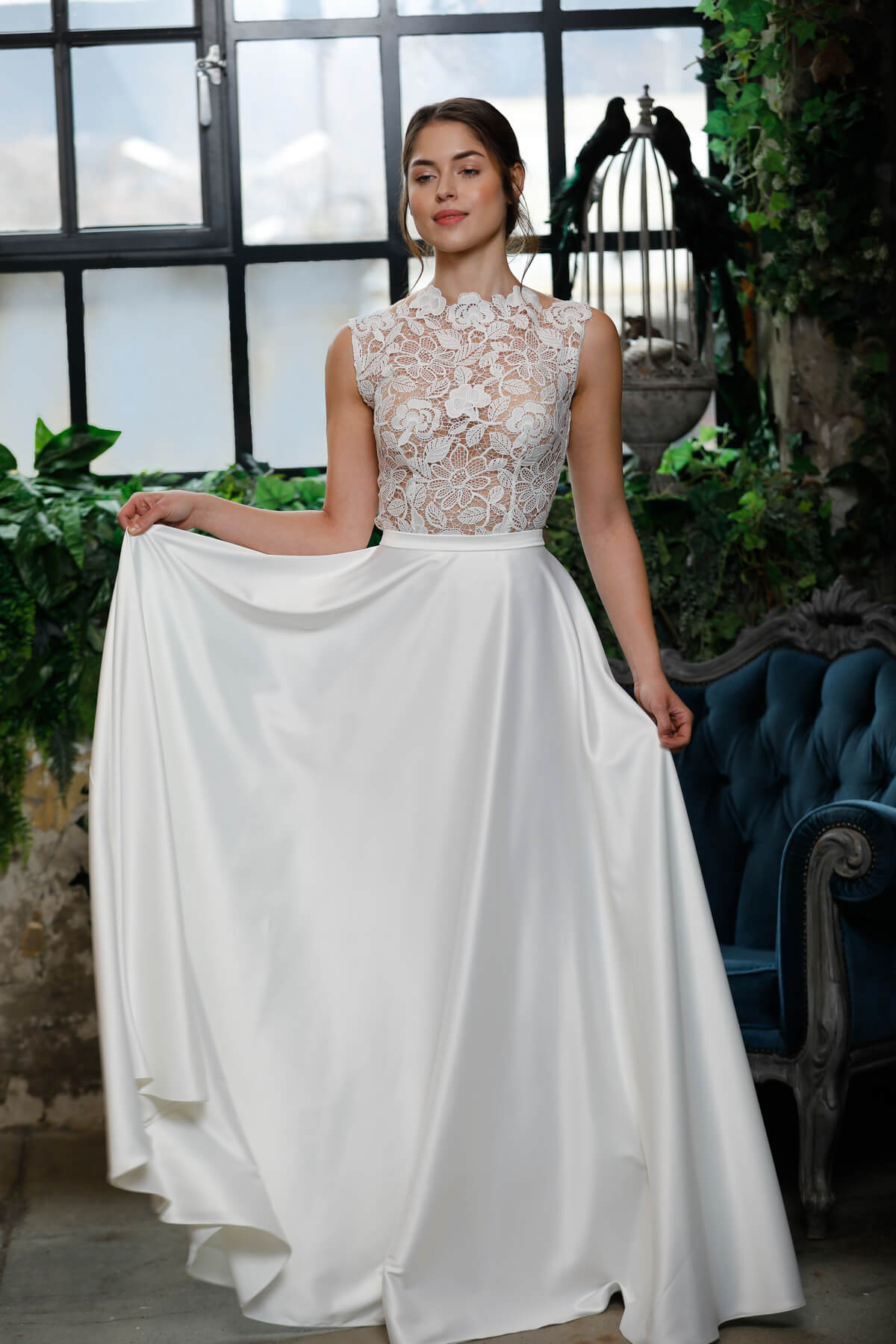 A visszafogott elegancia örök stílusjegy. A puha francia csipke finomsága, a mikádó szoknya letisztult vonalvezetése „klasszikus” megjelenést kölcsönöz. Lágy csipke, finom tüllszoknya, kézzel készült gyöngy-varázslat jellemzi a kollekció menyasszonyi ruhadarabjait.
