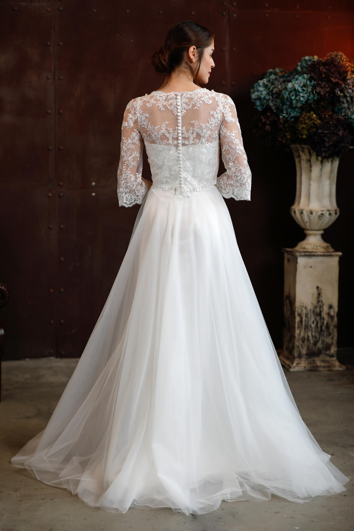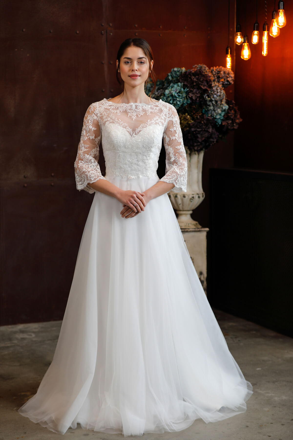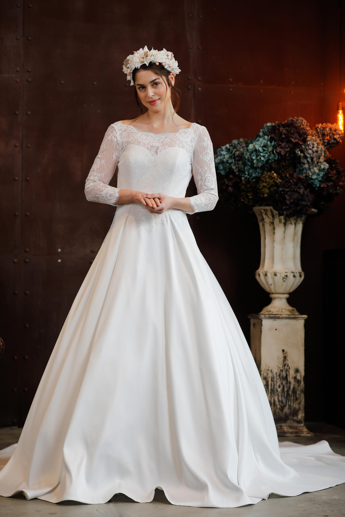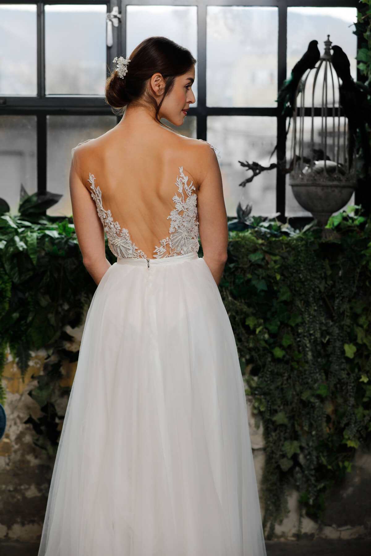 A visszafogott elegancia örök stílusjegy. A puha francia csipke finomsága, a mikádó szoknya letisztult vonalvezetése „klasszikus” megjelenést kölcsönöz. Lágy csipke, finom tüllszoknya, kézzel készült gyöngy-varázslat jellemzi a kollekció menyasszonyi ruhadarabjait.